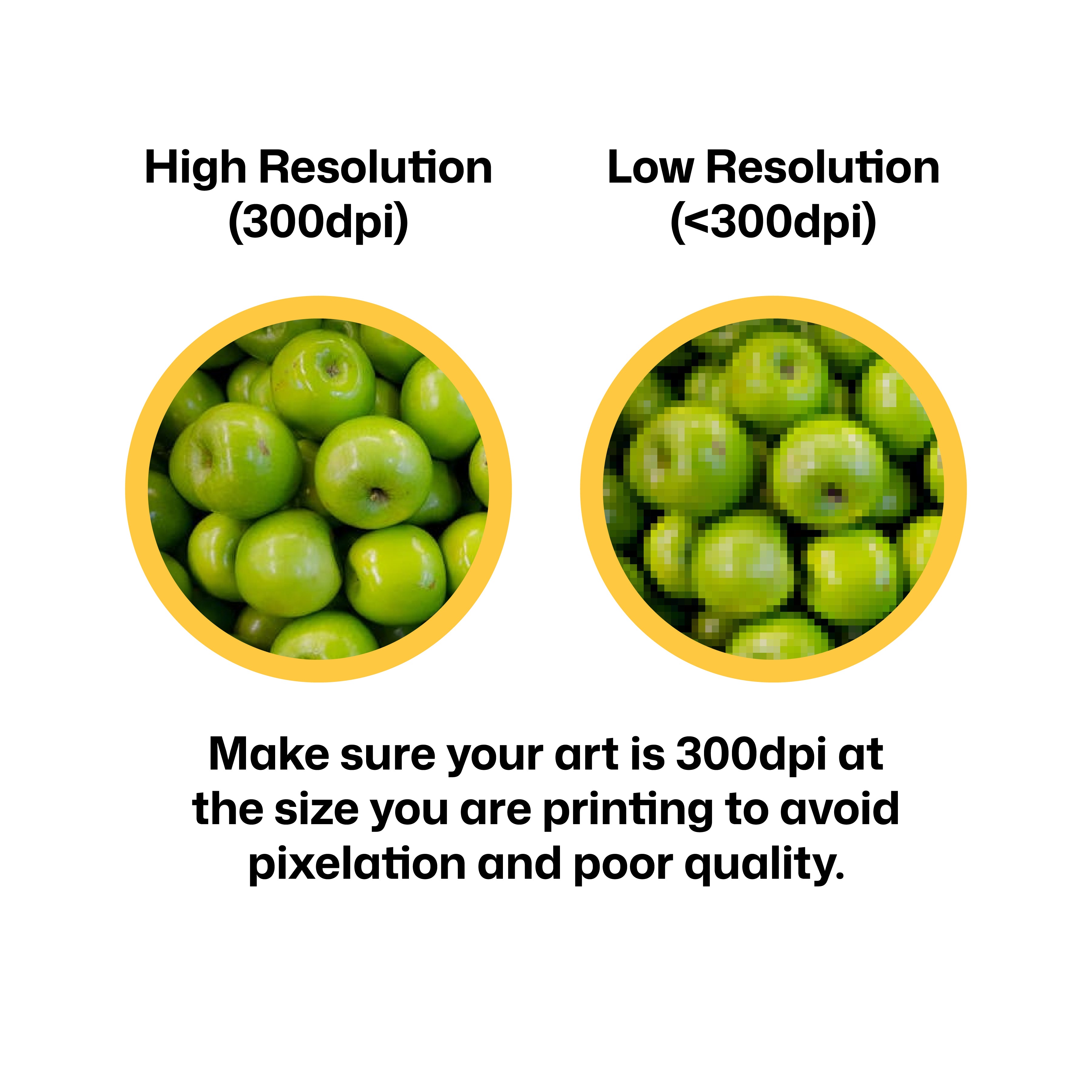 1. Make sure your artwork is saved at a high Resolution: For the best printing results, please use artwork with a resolution of 300 DPI (dots per inch) that is the size of the sticker you want, or larger. This will help maintain the quality of your design, especially for small or intricate details. For the best quality, use Vector Graphics.